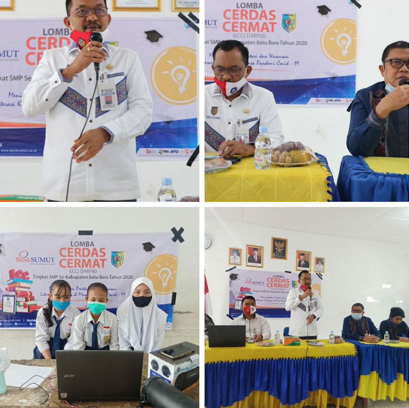 Akhirnya atas izin kita semua dengan tetap memohon ridho dari Allah SWT, Tuhan Yang Maha Esa, dengan mengucapkan Bisamillahirohmannirohhim, kegiatan lomba cerdas cermat daring kerjasama Dinas Pendidikan Kabupaten Batubara bersama PT. Bank Sumut saya nyatakan dibuka dan dimulai,” ujar Ilyas.