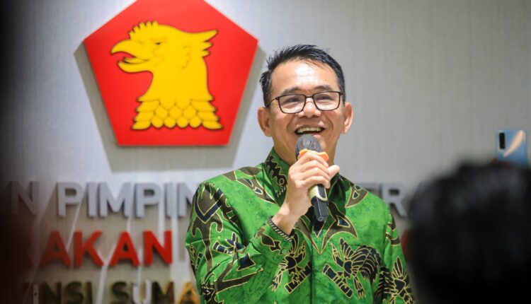 EKSISNEWS.COM, Medan – Wakil Wali Kota Medan, H Zakiyuddin Harahap, memaparkan berbagai program unggulan Pemerintah Kota Medan saat berdialog dengan Komando Ojol Indonesia Raya (Kojira) di Aula Kantor DPD Partai Gerindra Sumatera Utara, Sabtu (18/4/2026). Pertemuan berlangsung hangat dan interaktif, dengan fokus pada perlindungan sosial dan layanan kesehatan bagi pekerja sektor informal, khususnya pengemudi ojek online.